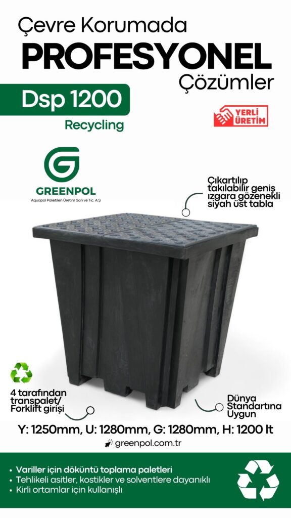 DSP1200 kimyasal döküntü toplama paleti, endüstriyel alanlarda kimyasal, yağ ve sıvı sızıntılarını güvenli şekilde toplamak için tasarlanmış yüksek dayanımlı polietilen döküntü (sızıntı) paleti çözümüdür. İş sağlığı, çevre güvenliği ve yasal uyumluluk gereksinimlerini karşılamak üzere geliştirilmiştir.